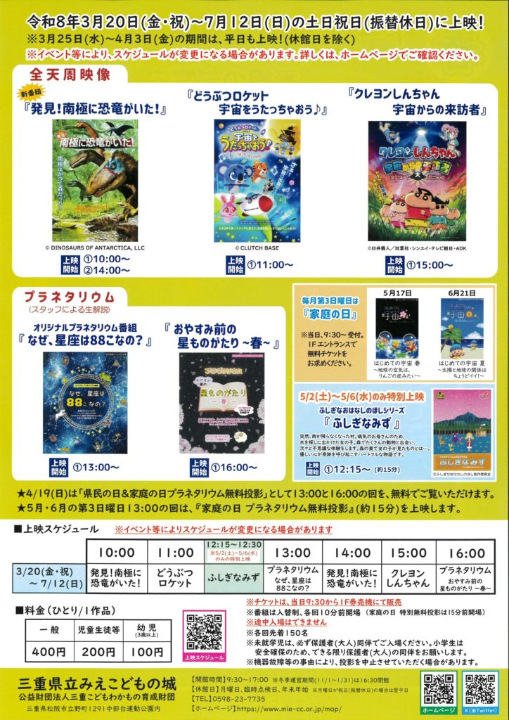 三重県立みえこどもの城 ドームシアター プラネタリウム 春 番組のご案内