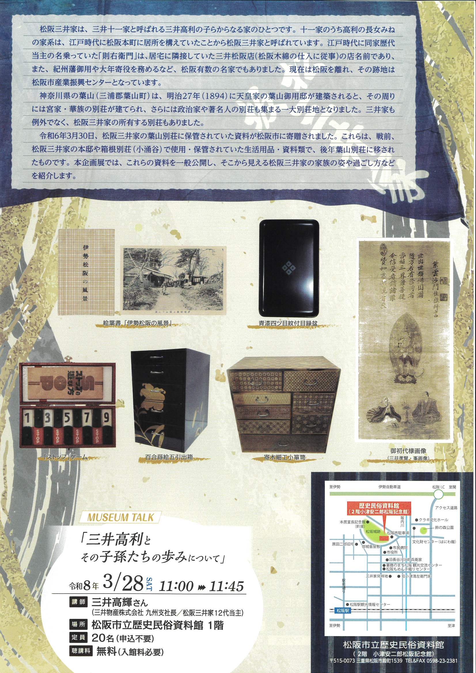 企画展 松阪三井家のおしなもの ~葉山資料からわかる家族の過ごしかた~令和8年3月7日(土)~令和8年5月31日(日)