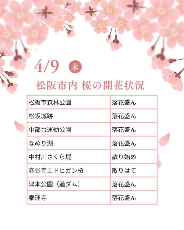 松阪市内の桜の開花状況 【令和8年4月9日現在】