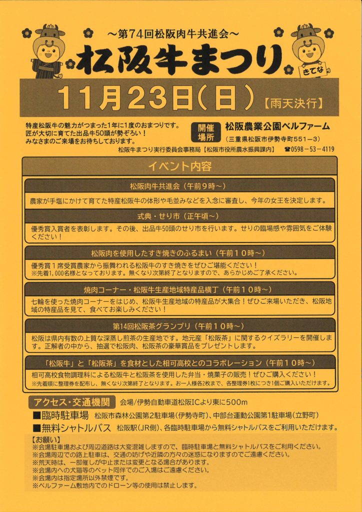 問い合わせ:松阪牛まつり実行委員会事務局【松阪市役所農水振興課内】