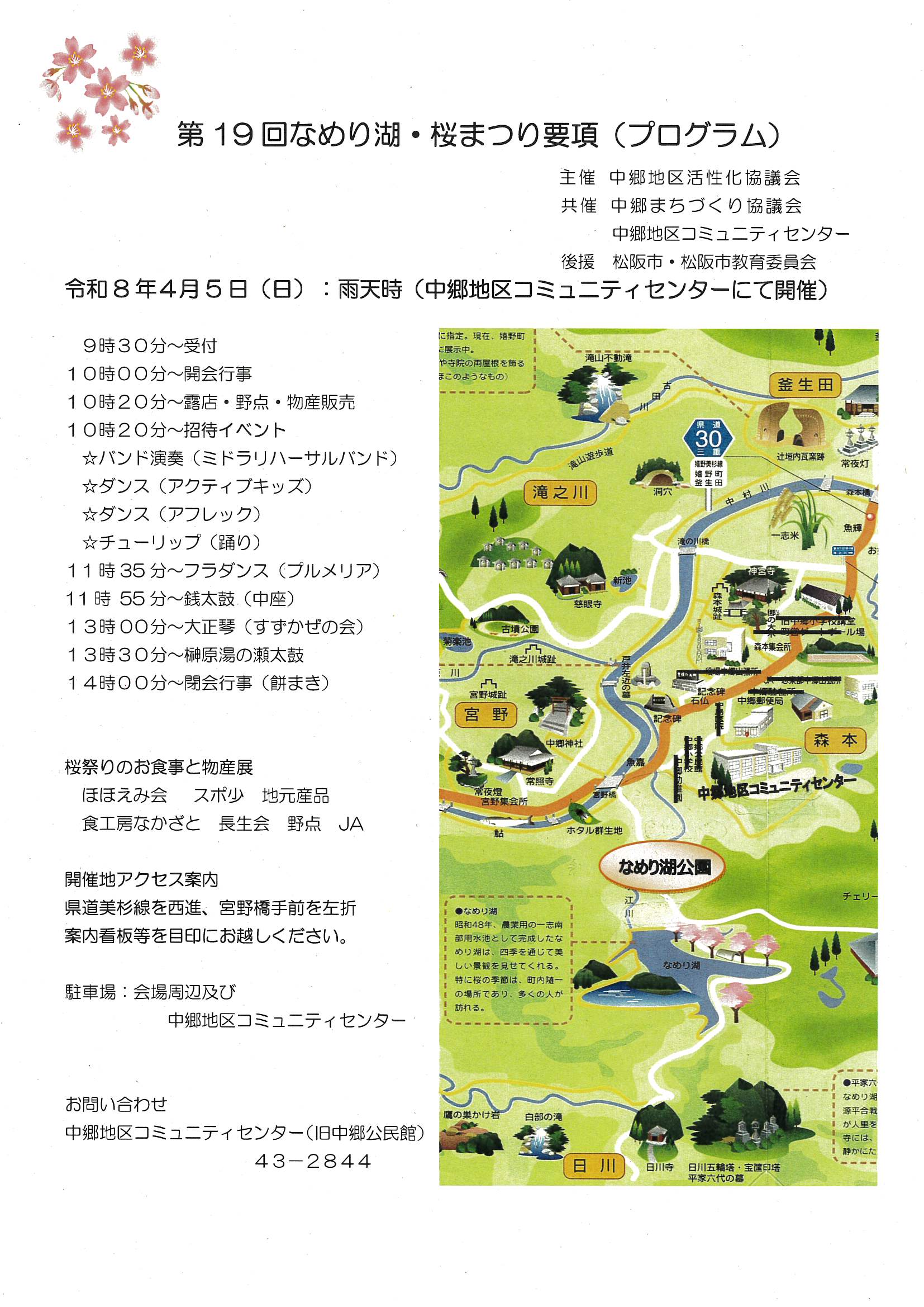 ●お問い合わせ/中郷地区コミュニティセンター(旧中郷公民館内) TEL 0598-43-2844