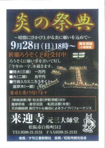 令和7年9月28日(日) 来迎寺 炎の祭典