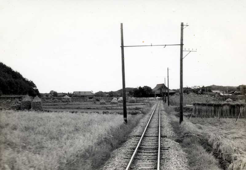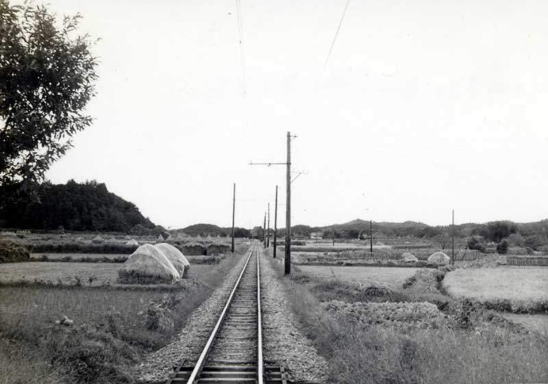 中央は射和人家 (松阪行き列車の車内より) |