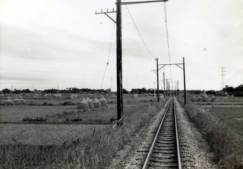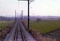 遠く花岡停留場を見る (松阪行き列車の車内より) |